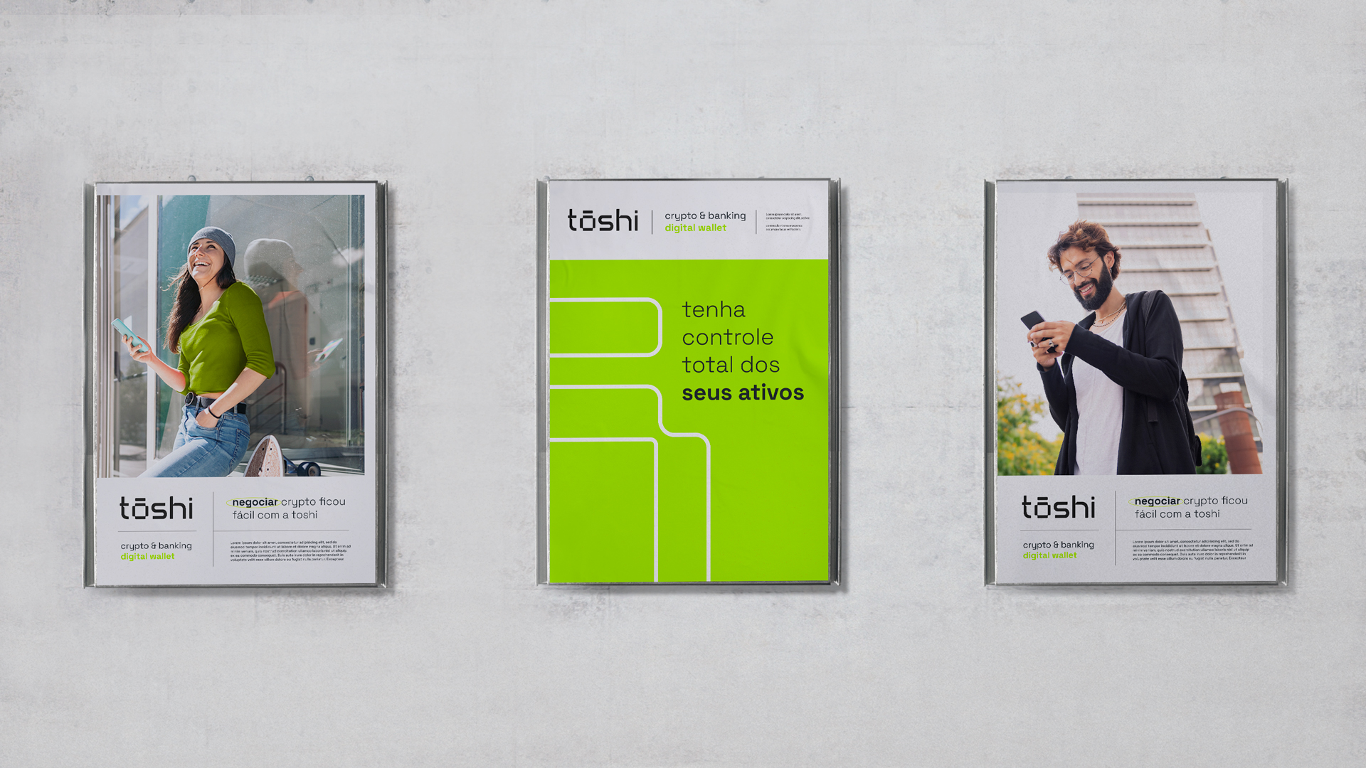 O design do logotipo foi pensado para transmitir tecnologia, inovação e acessibilidade, alinhando-se ao estilo visual da Web3 e blockchain. Elementos de pixel art, tipografia minimalista e cores neon foram incorporados para criar um logotipo marcante e moderno. O nome “Toshi” é inspirado em Satoshi Nakamoto, criador do Bitcoin, trazendo consigo a essência da criptoeconomia. Além disso, a estética do logo foi influenciada pelos kanji japoneses, incorporando cortes geométricos e linhas retas, resultando em um símbolo forte e memorável para o mercado de criptomoedas.